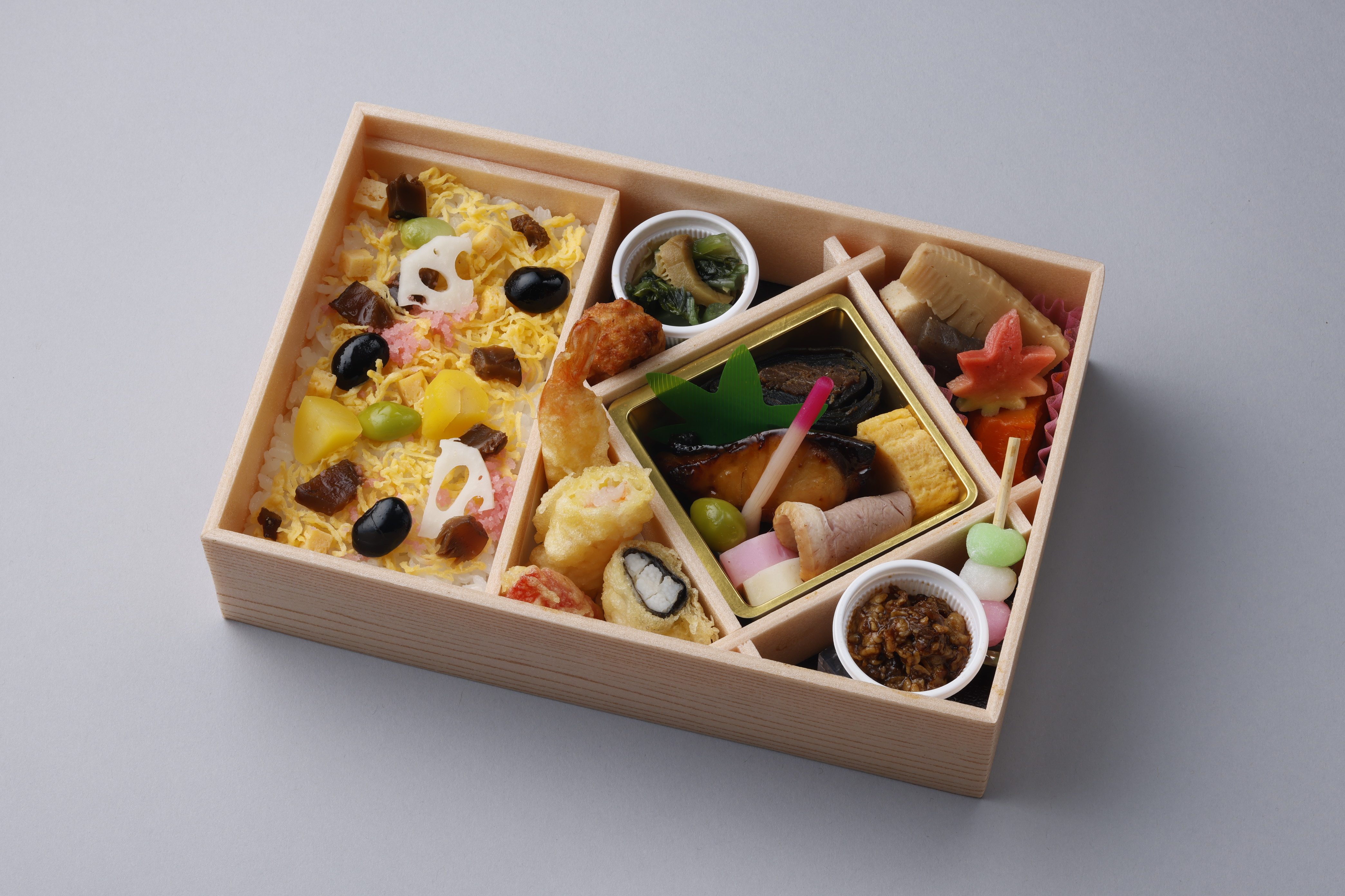 牛しぐれ 3色串団子 にしん昆布巻 小巻玉子 銀ヒラス照焼 鴨ロース 小袖紅白 ハジカミ ぎんなん揚げ ちらし寿司 きんし ぶどう豆 栗小 うす酢ハス しいたけ 枝豆 小巻玉子 おぼろ